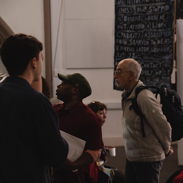 Through Final Frontier, we’re really keen to, and what I hope we did, honour and acknowledge other communities, and other forms of protest that haven’t had mass participatory scope but nonetheless have been a critical part of activism in the last 20-30 years. We also want to celebrate and engage and honour the activism of movements that are to some extent outside of our chronology, hence we had the banners by Vince Laws hung from a wonderful rope structure that allowed us to display various kinds of disability rights banners charting the history of the disability movement and some of the awful, shocking cases of exclusion that have happened over the years.