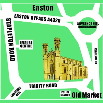 Turn left onto Lawfords Gate (A420), following the road around bearing right onto Trinity Road.