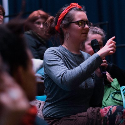 Discussing issues raised in performances is a key part of our IGNiTE programme. Here Keisha Thompson and Eshiva Wright take part in a post show talk back (photo @ Jessica Bartolini)