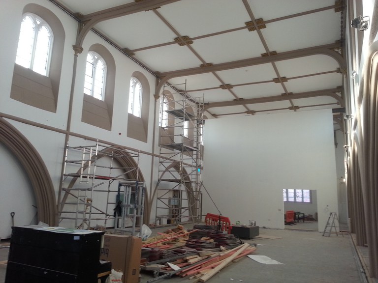 A new reception area is almost complete with a new heating system installed – a sprung wooden floor, lighting and drapes are due for installation in the upstairs hall space to make it suitable for activities such as conferences, dance and fitness and performance. There will also be a second, smaller, hall space suitable for IT classes, community meetings and smaller functions.